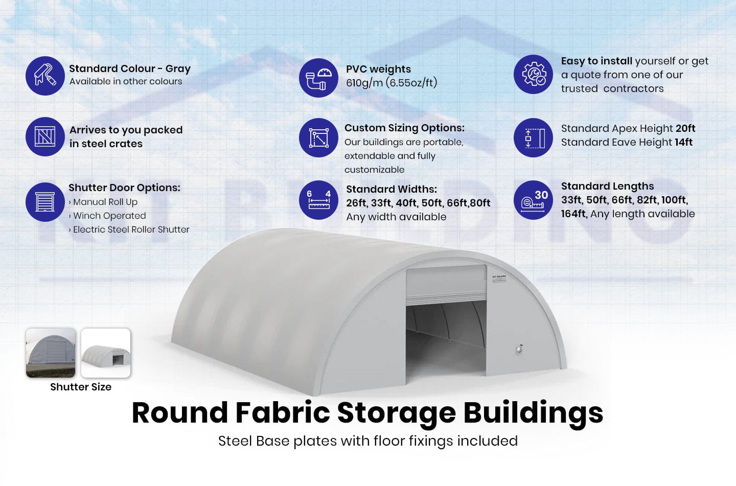 - Fabric Materials: We offer a 5-year product warranty on our PVC 23 oz/sy (610g/m²) external building fabrics, covering you against material defects. Kit Buildings