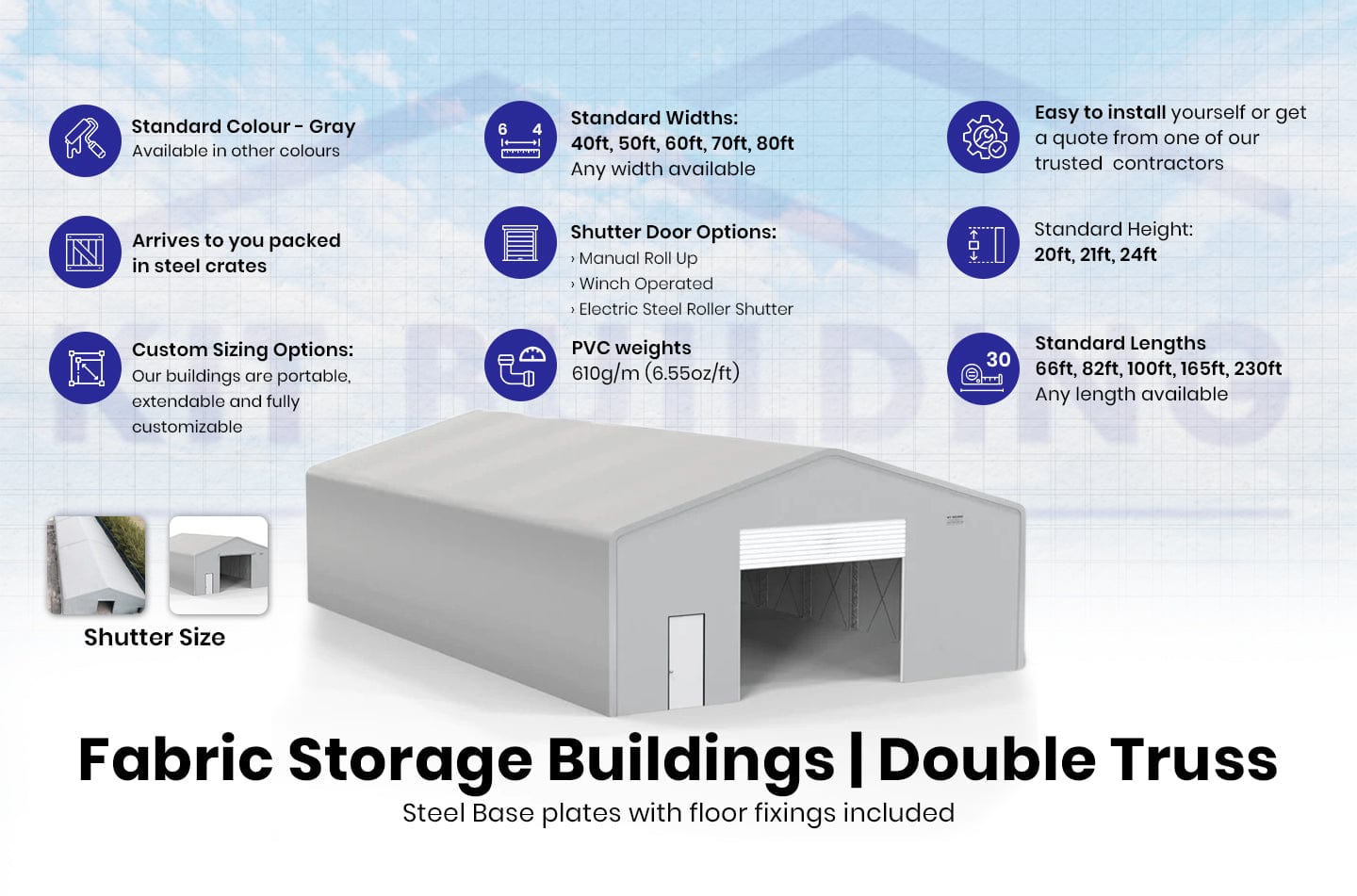 - Fabric Materials: We offer a 5-year product warranty on our PVC 23 oz/sy (610g/m²) external building fabrics, covering you against material defects. Kit Buildings